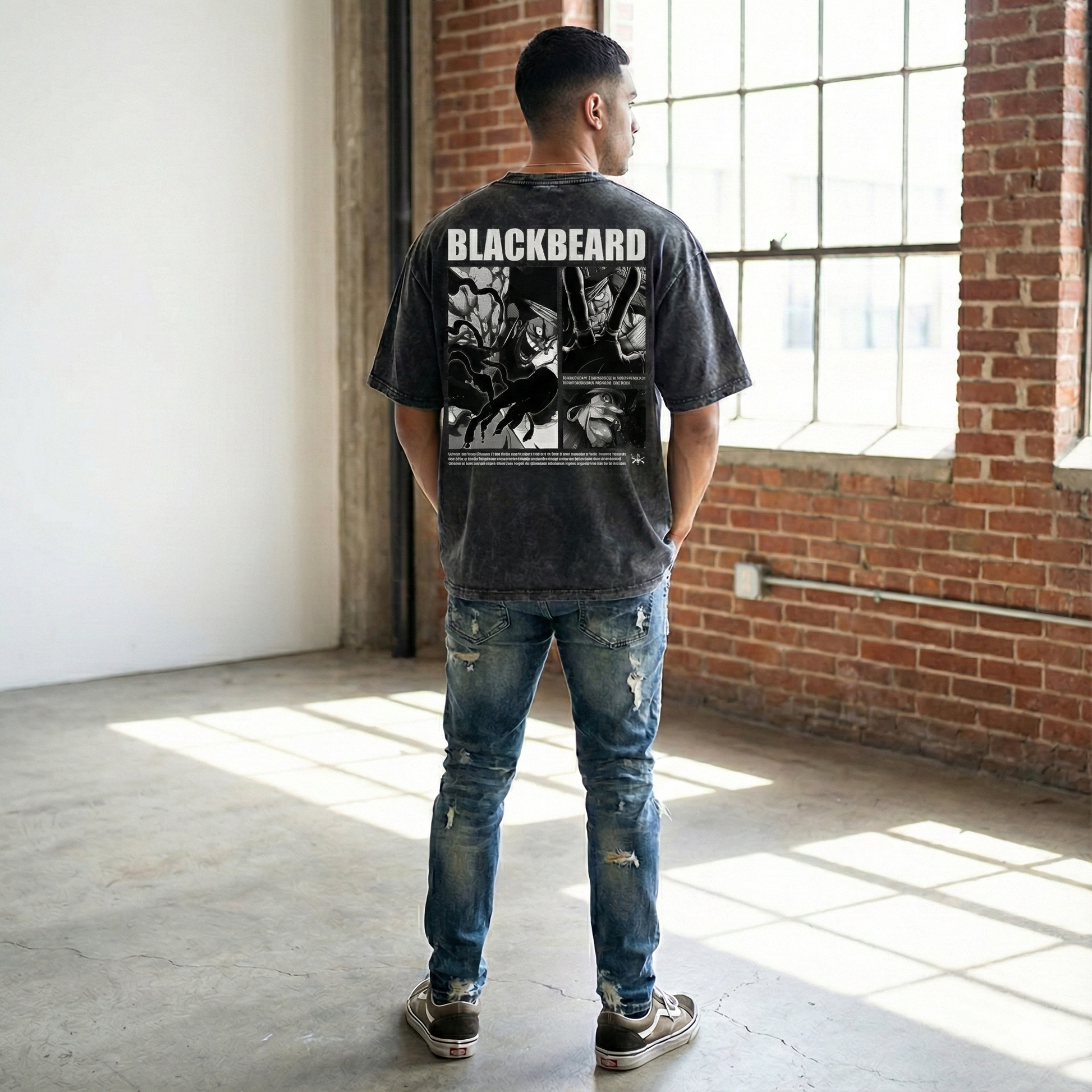 Embrace the darkness with the Marshall D. Teach Stone Washed Oversized Tee — bold, heavyweight, and built for true fans of the Pirate Legacy.